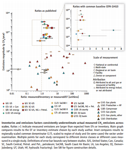 - “EPA estimates may be too low by a factor of 1.5.” Brandt et al (2014): “This excess is conservatively defined as 1.25 to 1.75 times EPA GHGI estimates.”